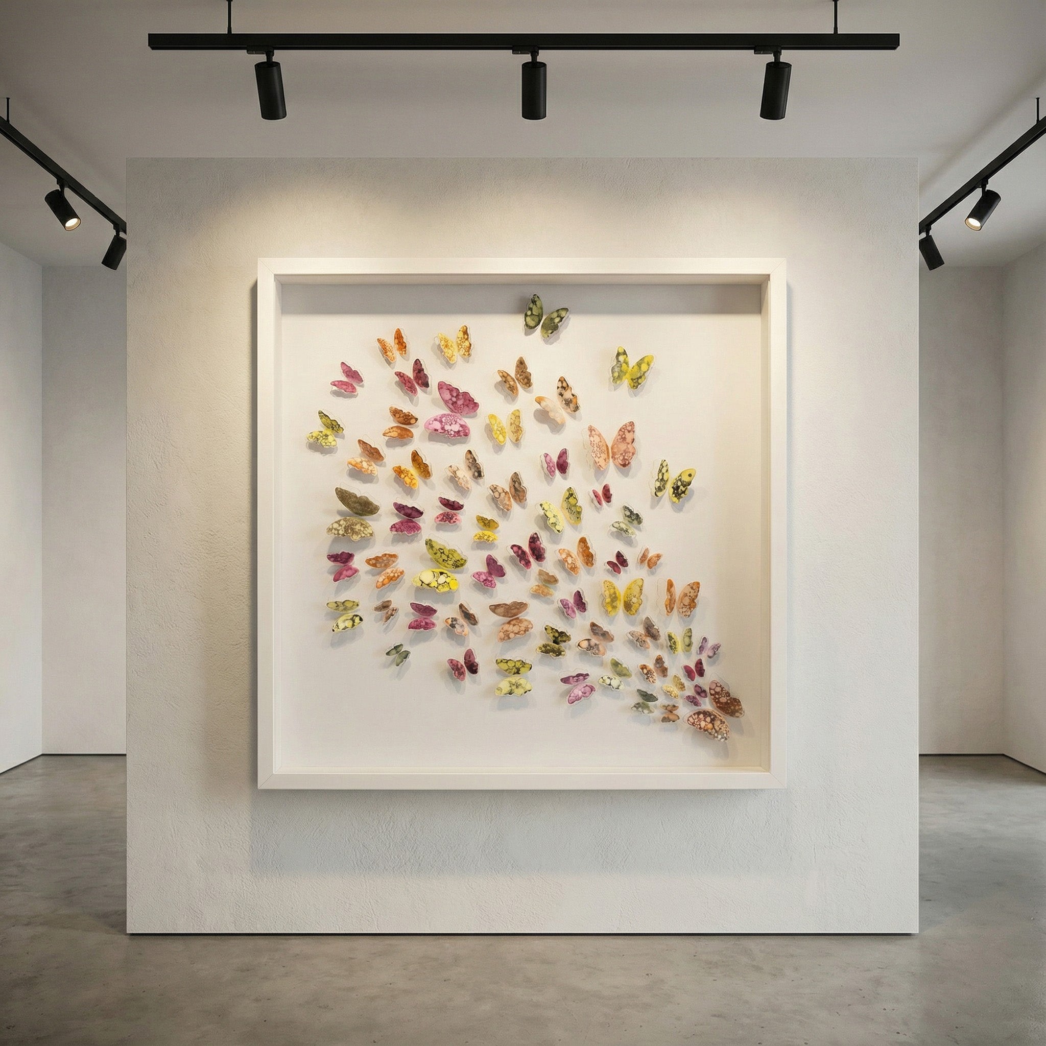 Hand-cut butterflies, soft watercolors and tactile textures for quiet, meaningful spaces.